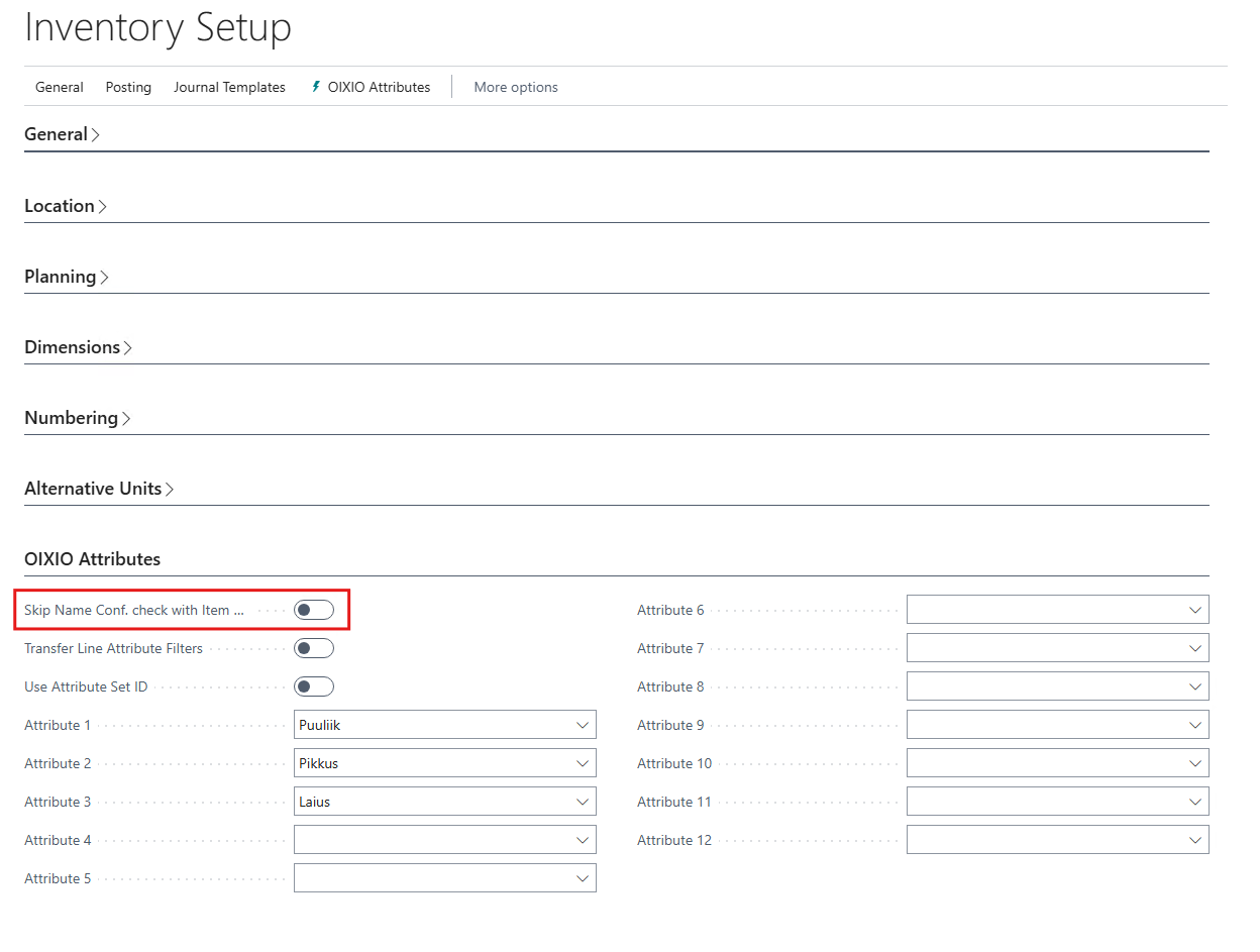 Skip Name Conf. check with Item Configurator- In the OIXIO Attributes submenu of Inventory setup, you can disable the above-mentioned intermediate check using this setting.