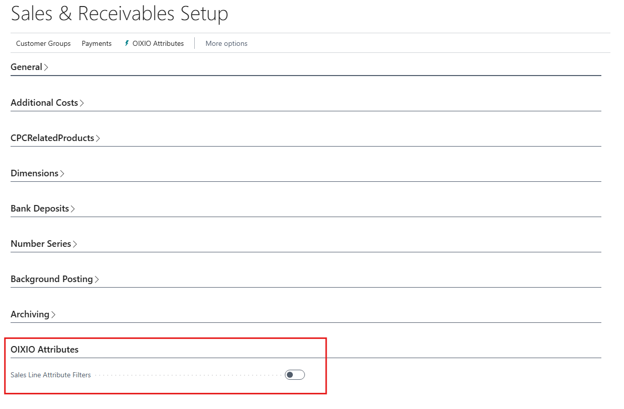 • Sales and sales Receivables setup -- Sales line attribute filters