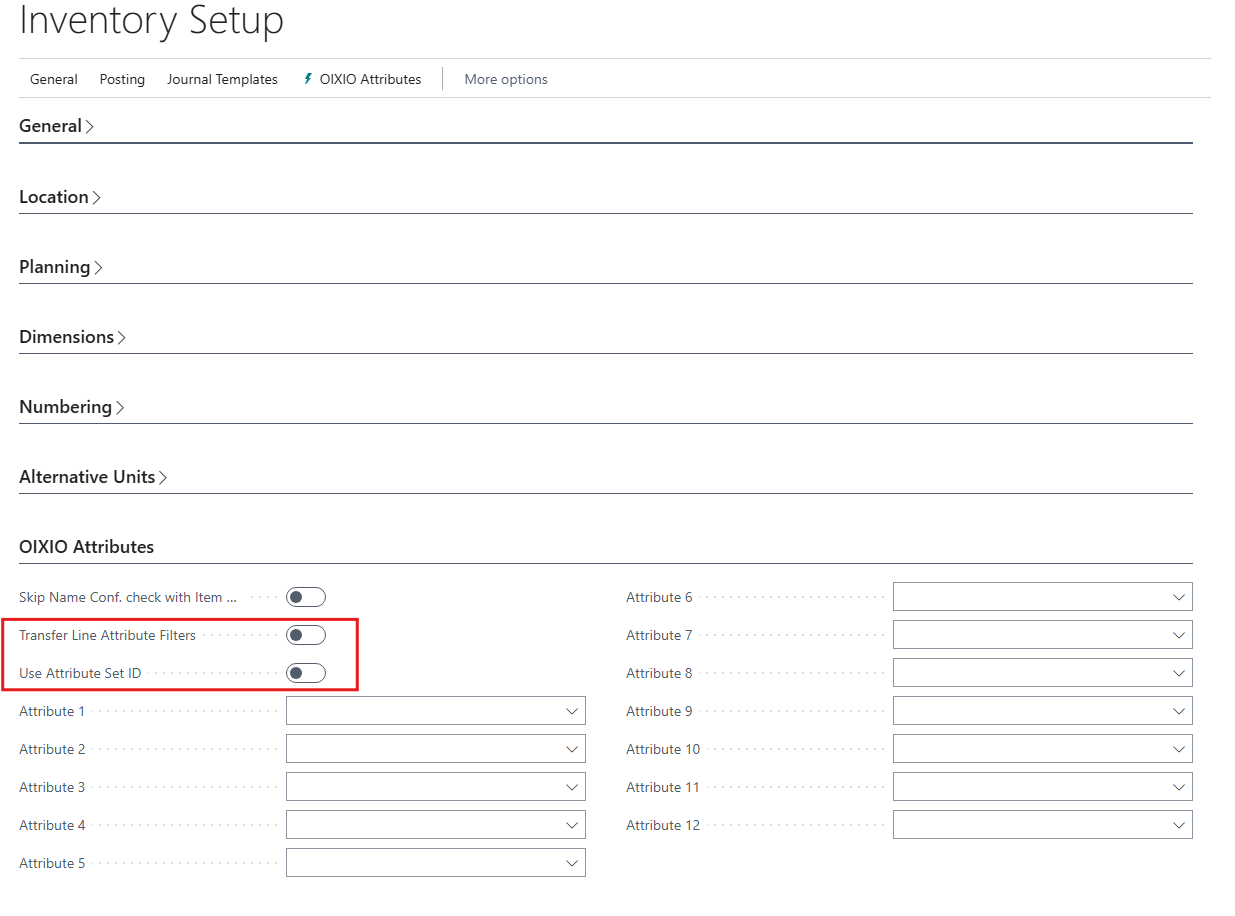 • Inventory setup -- Transfer order line attribute filters and Use attribute set ID