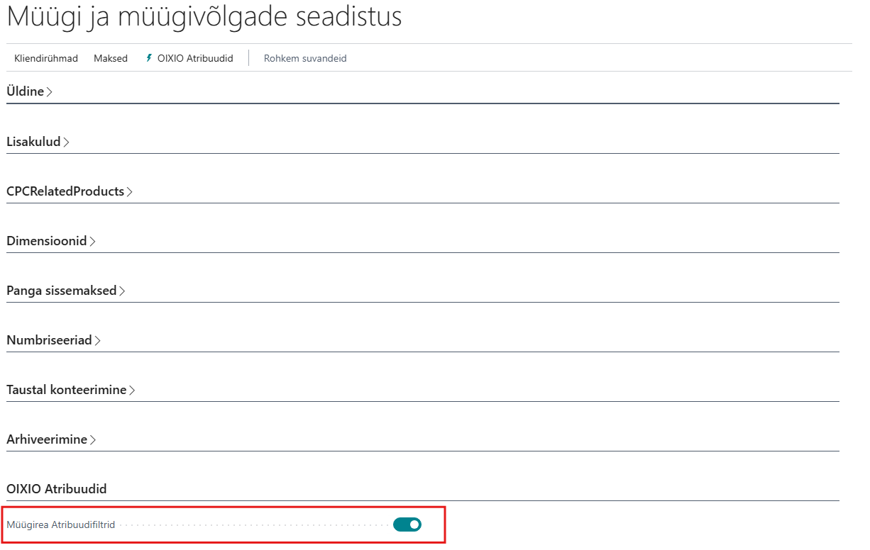 • Müügi ja müügivõlgade seadistus- Müügirea atribuudifiltrid