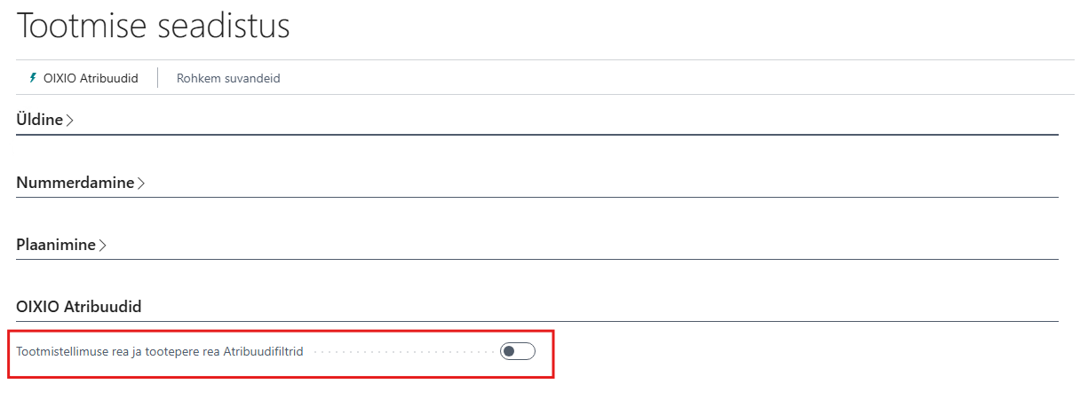 • Tootmise seadistus -- Tootmistellimuse rea ja tootepere rea atribuudid
