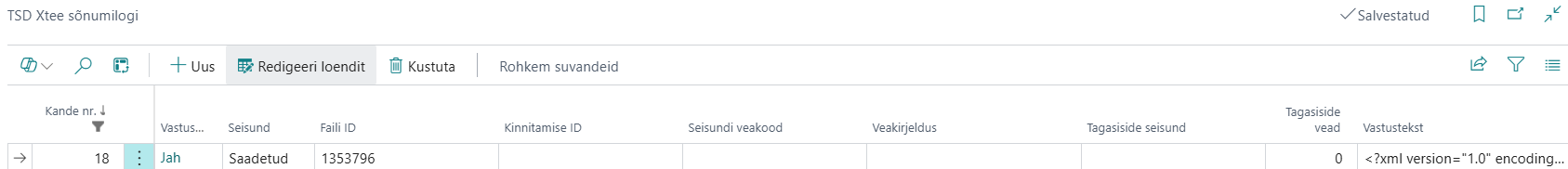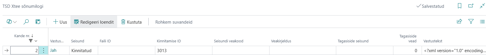 Kui kinnitamis saatmine õnnestus, TSD seisund on "Kinnitatud", TSD Xtee sõnumilogi:
