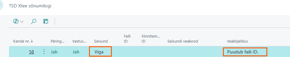 Kui faili ID ei tulnud, siis TSD staatus on "Viga". Põhjus on tehnilist laadi ja ei puuduta faili sisu.