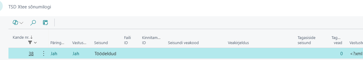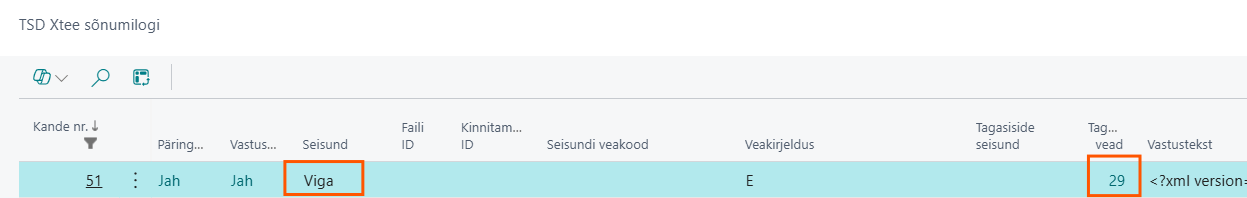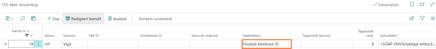Kui kinnitamist ei toimunud, on seisund "Viga", TSD Xtee sõnumilogis näeb vea kirjeldust: