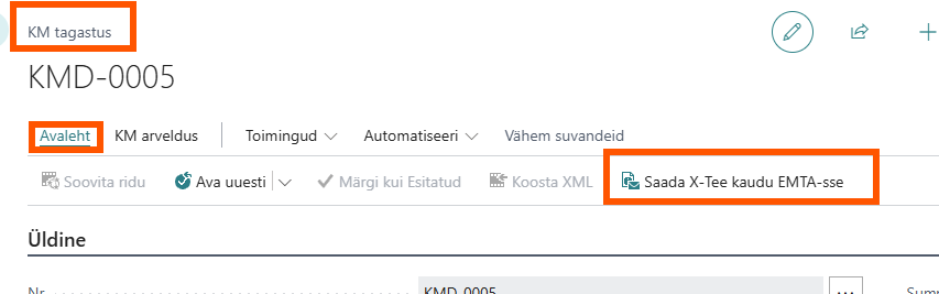 KMD moodustatakse vastavalt Eesti lokalisatsioonile lehel KM tagastused (KMD).