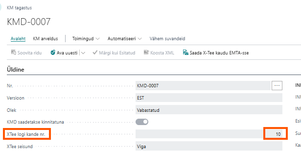 XTee logi kande nr. - täidetakse kande numbriga peale saatmist