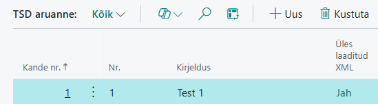 Kui fail on lisatud, TSD aruande tabelis veerus "Üles laaditud XML" on "Jah":